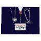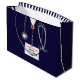 Unique nursing school graduation gift bag for nurse grad featuring creative navy blue hospital scrubs and stethoscope. To personalise edit text to add name of nurse, physician assistant or doctor.