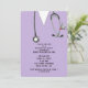 Nursing school graduation party invites featuring lavender hospital scrubs for nurse grad celebration.