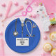 Unique nurse party plates featuring medical themed design for nursing school grad or medical school graduation party. To personalise edit text to add name.