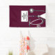 Unique nursing school graduation congratulations banner for nurse grad party. To personalise, edit text to add name and medical credentials.