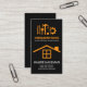 An all black cover features a handyman tools design at the top of the card. Just below the tools are the business name and a slogan caption option. ; You can change the caption remarks to the slogan to suit your own service needs. This is followed by a rooftop window icon that houses your prestigious name and the contact details.