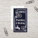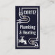 A dark blue cover features a faux silver plumbing pipes border design. Your prestigious name is over at the top whilst the business name is near the center of the card.
