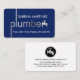 A dark blue cover feature a creative silver "plumber" pipe system design. Your prestigious name is at the top of the card with the contact details near the base.