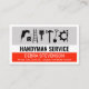Design features a light grey, white and red layered cover with a white rectangular border frame. At the top is an array of handyman tools which can represent some of the services that you offer. This is followed by the business name "HANDYMAN SERVICE", your prestigious name and the contact details.