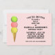 Cute tennis-themed birthday party invites featuring funny line and colourful tennis balls stacked as ice cream scoops.