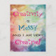 Creativity is messy and i am very creative postcard