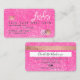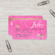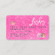 An elegant modern, stylish lashes and makeup artist credit card style business card with a modern script font typography on a chic faux bright pink glitter trendy background. all text is customisable, add your social media. Featuring faux rose gold stripe. Add your logo, your monogram and QR code.