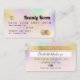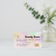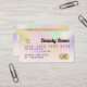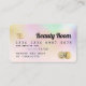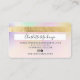 An elegant modern, stylish beauty Hair and makeup artist credit card style business card with a modern script font typography on a chic nacre pearl iridescent holographic ombre on pastel blush pink and gold metallic foil glam trendy background. all text is customisable, add your social media. Featuring faux gold stripe. Add your logo, your monogram and QR code.
