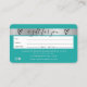 An elegant modern, stylish beauty Hair and makeup artist credit card style gift certificate business card with a modern script font typography on a chic turquoise and silver foil. all text is customisable, add your social media. Featuring faux silver stripe. Add your logo, your monogram.