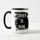 Funny Halloween coffee mug with bold black brushstroke design and the phrase “Creep It Real.” A playful choice for spooky season mornings, Halloween gifts, or office deskware with a sense of humour. Perfect for coffee, tea, or hot cocoa during October festivities.