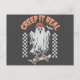Creep It Real Retro Halloween Skate Ghost Postcard