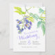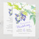 This elegant wedding invitation features a pretty botanical watercolor painting of a potato creeper in shades of purple and green on a white background. Great for co-coordinating with purple and floral weddings. Original Watercolor painting and design by Sarah Trett.