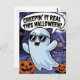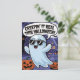 Halloween greeting card featuring a cute ghost wearing sunglasses, striking a cool pose.