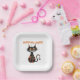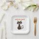 Black and orange cat with a creepy smile Happy Halloween paper plates. There are napkins to match. AI assisted graphic purchased with commercial license. Artwork: PaintPixelCo