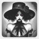 Creepy Black and White Woman in Hat Square Sticker