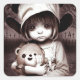 Creepy Child with Scratched up Teddy Bear Square Sticker