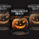 Our Halloween party invite boasts bold, attention-grabbing typography and a striking colour scheme of vibrant orange and deep black. It's the ideal choice for those looking to create an eerie and mysterious atmosphere for their Halloween gathering.