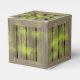 A cartoony grey wood crate with a green toxic glowing cloud seeping out between the planks cracks. Great for halloween treats.