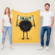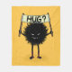 Hug blanket with a cute evil monster - grinning hairy character from the family of the Evil Flower Bug. It holds a sign with the hand-lettered world “Hug?”. This friendly weird creature has nice little toeless socks just to keep its feet warm in this unfriendly world.