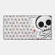 This XXL mouse pad features a playful and whimsical design perfect for adding a touch of personality to your desk. The repeating pattern of cute, cartoon skulls and crossbones, accented with scattered red hearts and small flowers, creates a unique "spooky-cute" aesthetic.