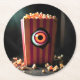 This weird and surreal image of an eyeball nestled in the middle of a bag of popcorn is perfect for Halloween décor! (A.I. generated)