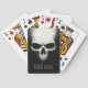 Playing cards featuring a white, creepy skull on a black background with your custom text in a dark grey, ornate font.