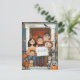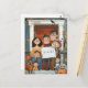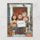 This is a very cute Halloween postcard featuring a creepy family with their pets sitting on their porch and holding a white banner with a customisable message. By default the message says "let's boo this!"