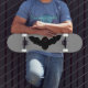 This awesome skateboard features a creepy vampire bat with evil red eyes and sharp white fangs. This fun design is perfect for Halloween and should amuse children and adults alike.