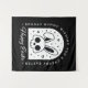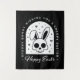 Creepy happy Easter wishes with a spooky bunny skull rabbit head illustration. Gothic themed black and white aesthetic funny dark humour greeting decoration tapestry.