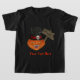 Creepy looking pumpkin head wearing a top hat with a skull kids Halloween T shirt. Replace your text in the template, or be sure to delete for no text. Available in assorted sizes, styles, and colours for men, women, and kids. Visit Smilin' Eyes Treasures to see more Halloween cards and gifts.