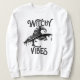 Oversized fit. Machine washable. #WitchVibes #HalloweenHoodie ALT-TEXT: Creepy witchy vibes sweatshirt for women. Black hoodie with occult-inspired design. Soft fleece Halloween apparel.