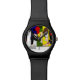 They color and design is exactly what I expected. Decent quality watch however the buckle is plastic that seems a little flimsy. They design is really cute and the colors were true to what showed online. If recommend offering a larger or oversized option since the is the design on the face and it is really quite small. It could be more of a statement pice of it was larger.