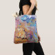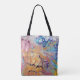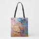 Bright turquoise, purple, rose and golden yellow make a fantastic design on this tote. It will go with just about anything. Design is adapted from painting done by Joy Lomenick.
