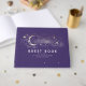 Starry night and crescent moon night scene purple and gold wedding guest book