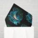 This Halloween-themed tissue paper features a stunning design that captures the essence of a magical night sky. Against a deep, dark black background, a striking blue and yellow crescent moon shines brightly, casting its gentle glow over the scene. Surrounding the moon, intricate blue and black clouds swirl, creating a sense of movement and depth.