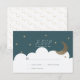 This cute baptism RSVP/reply/responce card features a navy blue background with faux gold glitter stars, the crescent moon, and white clouds. The reverse side features a white background faux gold random dot patterns. Personalise for your needs. You can find more matching products at my store.