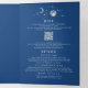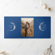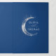 This navy blue tri-fold wedding invitation intertwines your treasured photos with a romantic celestial theme, making it perfect for celebrations under "Under the Stars," "To the Moon and Back," or "Written in the Stars." The design cleverly combines your invitation, wedding details - information, and RSVP into a single, elegant package. You also have an option to incorporate a QR code by replacing the provided URL with your desired one. Adorned with stunning depictions of a silver crescent moon, radiant sun halo, various planets, constellations, and galaxies, it encapsulates the spellbinding beauty of the nocturnal heavens. Choose to display a single image across both sides or pick two distinct photos for added diversity.