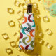 This bottle cooler has a mid-century modern design of crescents in retro colours. Want the same design with different colours? Message me.