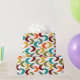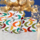 This wrapping paper has a mid-century modern design of crescents in retro colours. Want the same design with different colours? Message me.