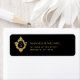 An elegant black and gold design with a vintage air, with a wedding monogram from the 2 initials of the bride and groom, in a vintage faux gold foil crest, before the name and address, written in golden caps. The background is black.