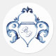 Crest Blue and white Delft Monogrammed wedding Classic Round Sticker