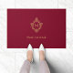 Crest Burgundy Faux Gold Elegant Monogram Name Doormat