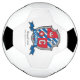 Knights coat of arms style shield monogram letter C art personalised name soccer ball in shades of blue, red and grey. Personalise with your own name and name meaning or other words for a personalised touch. This example is for Connor. Hound lover. Wise with strong desires. Unique shield graphic art drawing of a wolf dog hounds head, crown, star, design and name meaning by Sarah Trett for www.mylittleeden.com. Other matching items, names and designs are available.