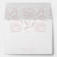Blush Pink Monogram Crest Wedding Envelope: Vintage-inspired line art monogram crest with elegant blush pink typography. Features a chinoiserie floral pattern on the inside for timeless sophistication. Elegant script font for a formal and classic style.