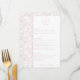 Blush Pink Monogram Crest Wedding Menu Card: Vintage-inspired line art monogram crest with elegant typography. Features a chinoiserie floral pattern on the reverse and on the side for timeless sophistication. Enter the design tool option if adjustments are needed when your menu text is added.