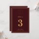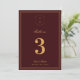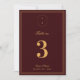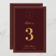 A crest monogram wedding table number featuring rich burgundy tones paired with soft gold accents for a timeless, elegant look. The refined emblem and classic layout add a polished touch to each table, making it ideal for formal, evening, or fall weddings. Designed to coordinate seamlessly with your burgundy and gold suite, this table number brings a sophisticated, upscale feel to your reception decor.