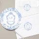 Crest Monogram Delft Blue Floral Wedding Classic Round Sticker
