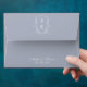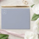 Dusty Blue Monogram Crest Wedding Envelope: Vintage-inspired line art monogram crest in white with elegant dusty pale blue background. Features a chinoiserie floral pattern on the inside for timeless sophistication. Elegant script font for a formal and classic style.