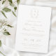 Elegant Pale Taupe Monogram Crest Wedding Invitation: Vintage-inspired line art monogram crest with traditional pale taupe typography. Features a chinoiserie floral pattern on the reverse for timeless sophistication.