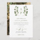 Classy elegant botanical eucalyptus foliage crest monogrammed wedding invitation template with custom engagement photo and a vintage elegant calligraphy script. Suitable for spring summer botanical outdoor garden weddings.
